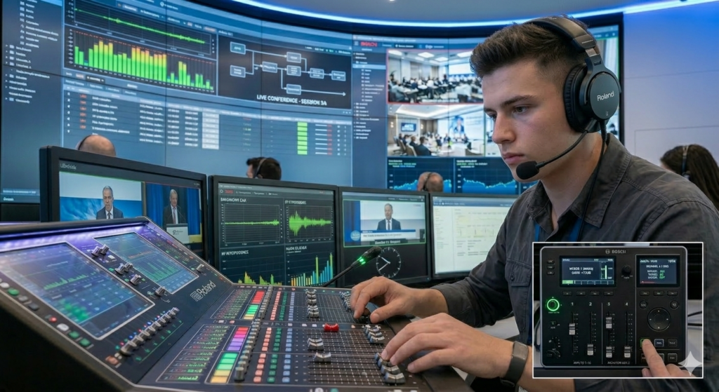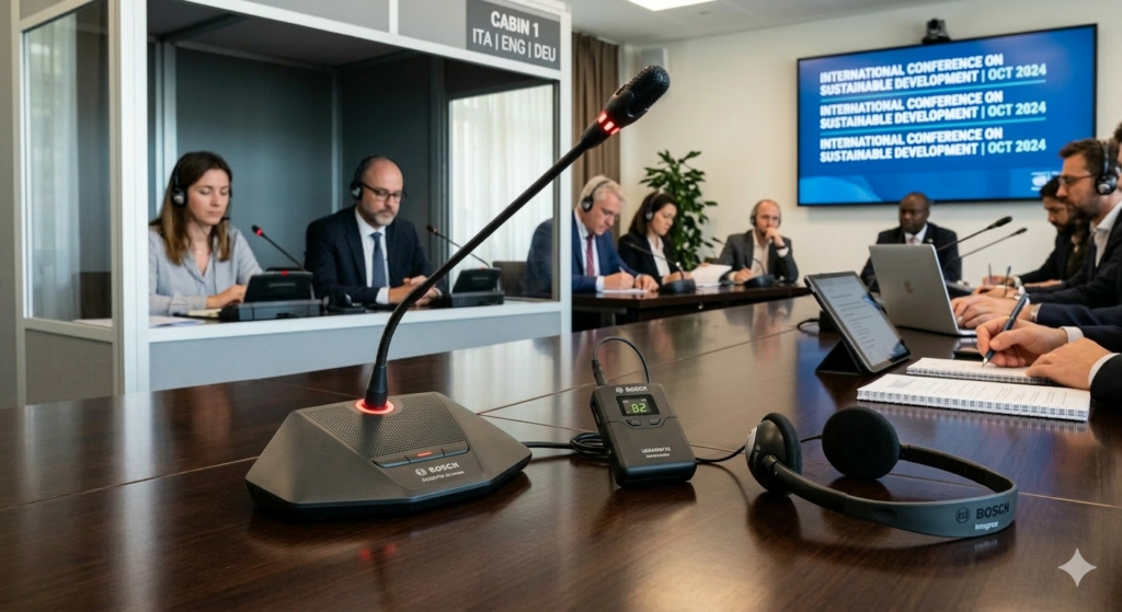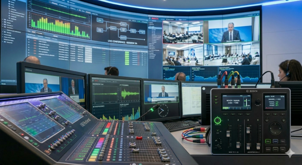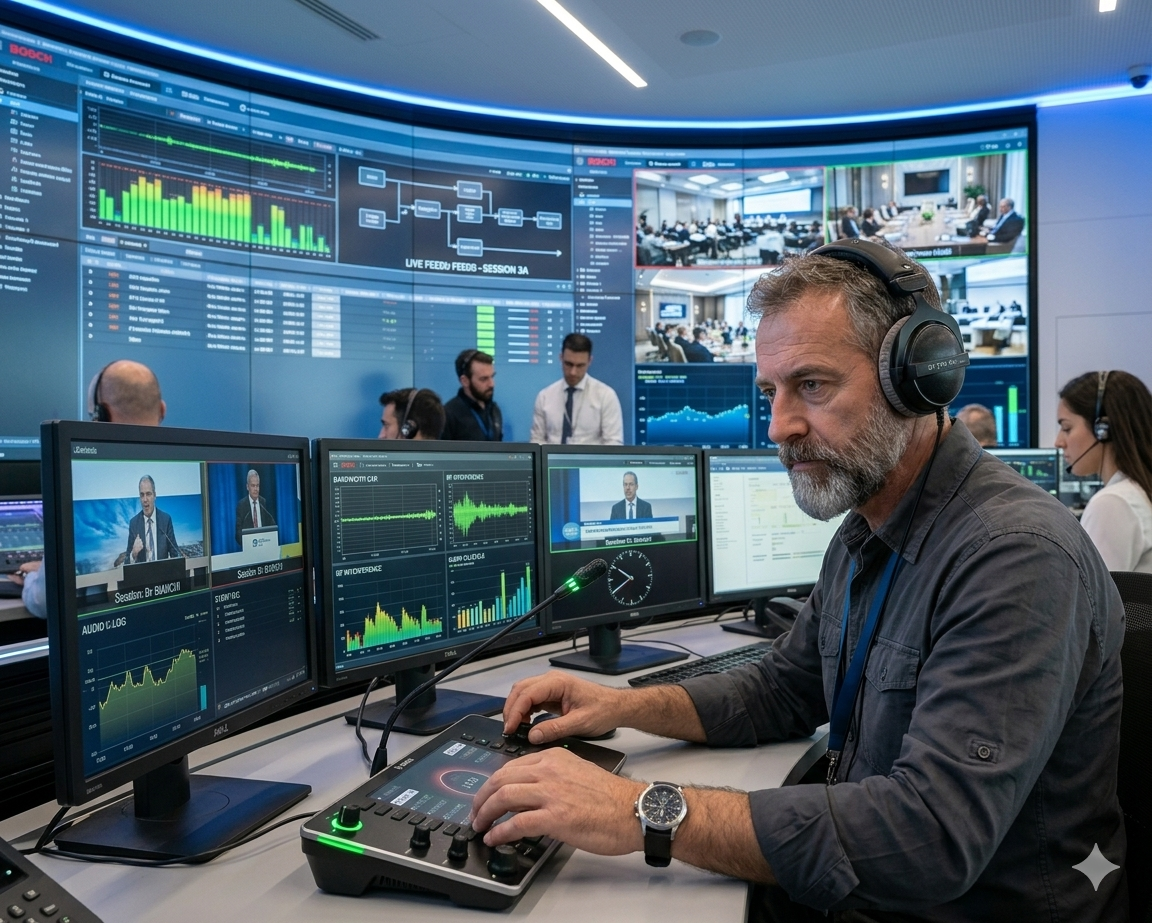 - Conference & Translation: We integrate BOSCH (Dicentis and Integrus) systems, the global gold standard for simultaneous translation and congress management.