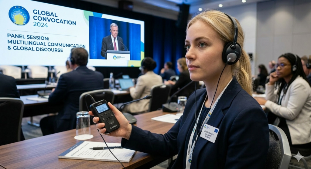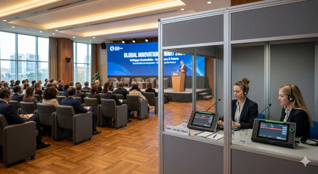 Consequently, your international delegates can engage in real-time, supported by professional interpreters and ISO-compliant hardware. This ensures that every nuance of your discourse is captured and transmitted flawlessly, regardless of the language barrier.