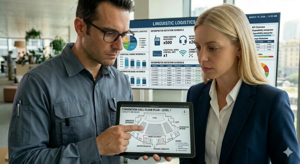 - Interpreter Booths: Sourcing and installing ISO-compliant booths for on-site professionals.