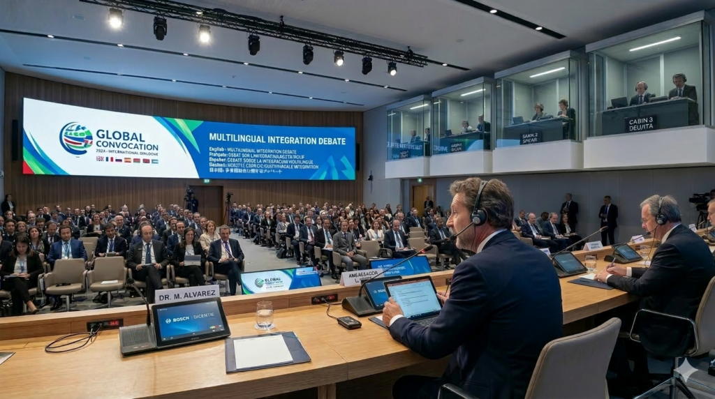 - Real-time Signal Management: Ensuring perfect audio levels for both on-site delegates and remote participants.