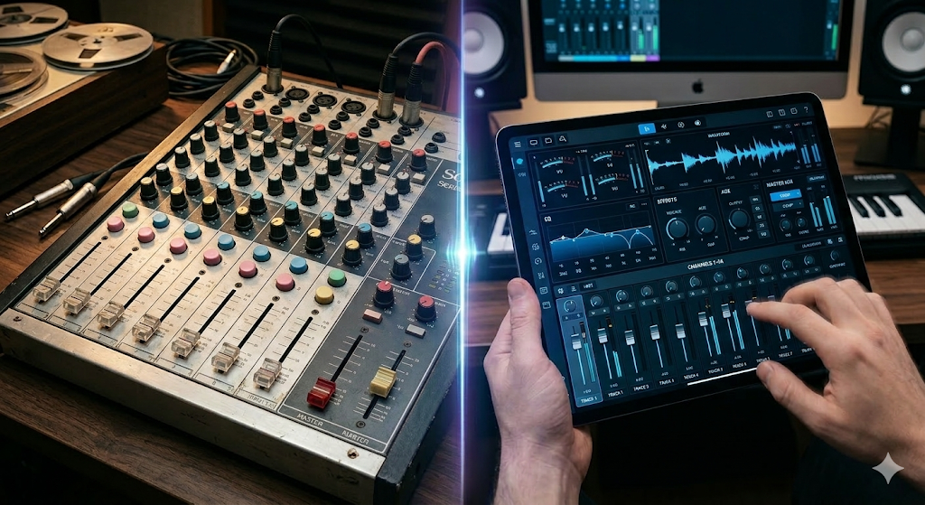 A split-screen graphic showing a vintage 1980s mixing console on one side and a modern digital tablet-controlled interface on the other.]Why Our Experience is Your Best Guarantee